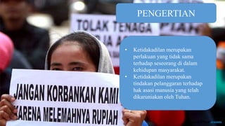 Ketidakadilan sosial juga merupakan cara tindakan tidak adil yang dilakukan dalam masyarakat.